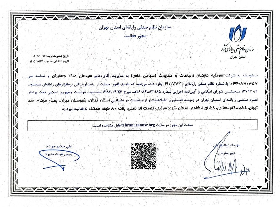 دریافت مجوز فعالیت از سازمان نظام صنفی رایانهای استان تهران توسط شسکام